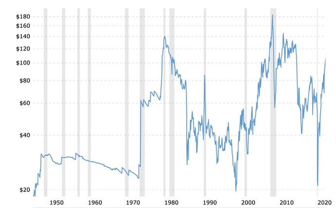 Investopedia reveals the common factor throughout nearly all US recessions is oil market turbulence; a sudden increase in the price of crude oil has preceded nine out of 10 post-WWII recessions.