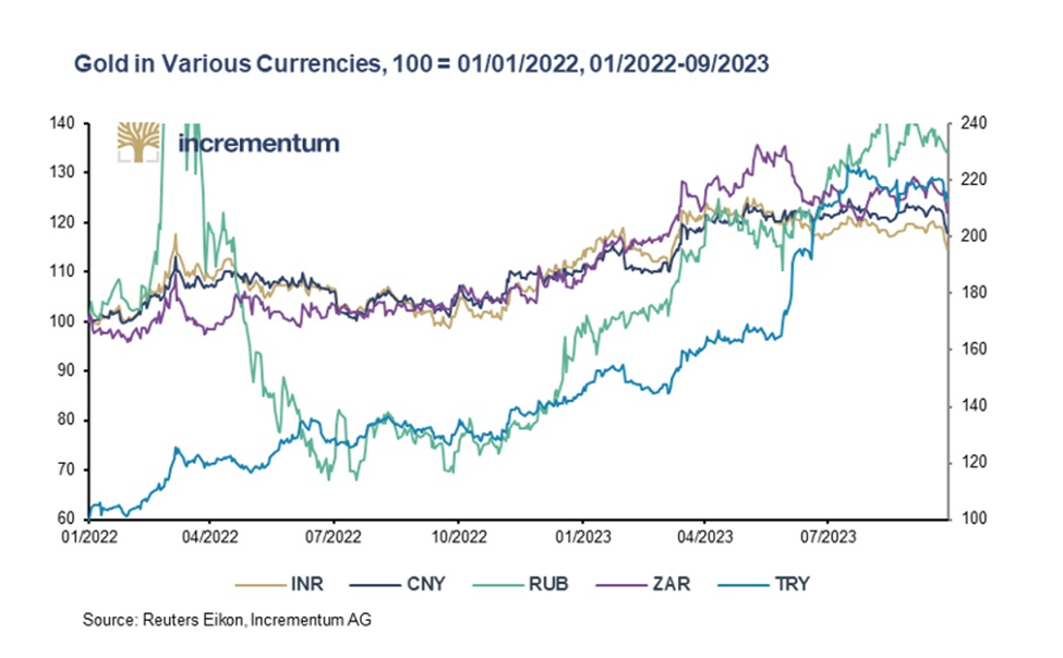 North America and Europe saw outflows of 2.3% and 6.1%. The price of gold in Eastern currencies has also increased significantly, bolstering its reputation as a wealth preservation tool.