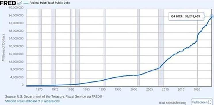The national debt stands at $36.2 trillion and will grow up to $5T more with Trump’s so-called Big Beautiful Bill, which has been passed.