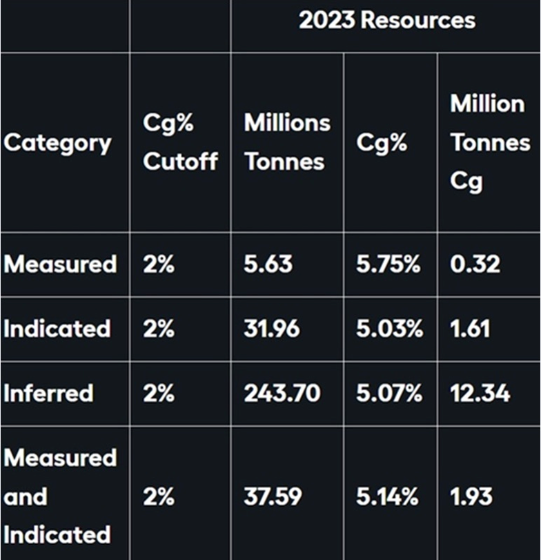 Measured and indicated resources now stand at 37.6 million tonnes at 5.14% graphite, with an inferred resource of 243.7 million tonnes at 5.07% graphite.