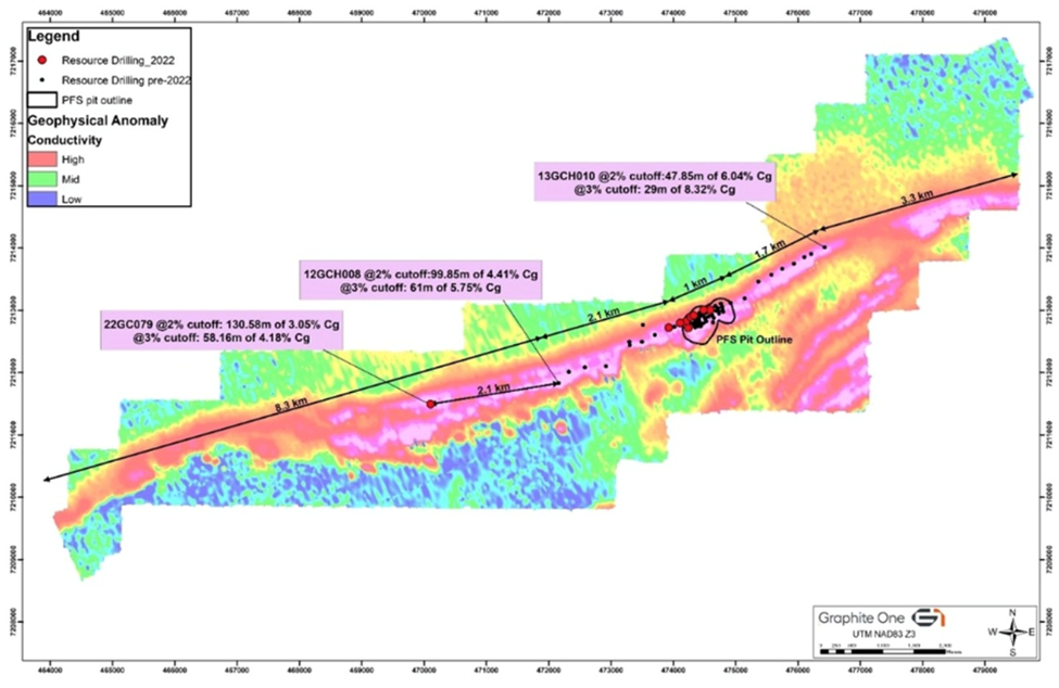 Graphite One also plans to complete 20,000 meters of drilling in 2023-24 with the goal of increased annual concentrate production for the upcoming FS compared to that assumed in the PFS.