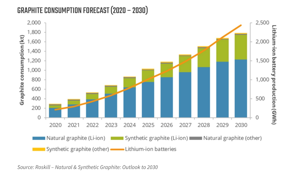 The EV battery market alone is projected to consume well over 1.6 million tonnes of flake graphite per year, resulting in a 10-fold increase in demand by 2030. This is worrisome considering that total graphite mined in 2020 for all uses, including lump graphite for pencils and graphite used in nuclear reactors, was only 1.1 million tonnes.