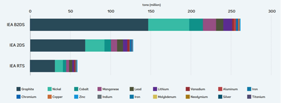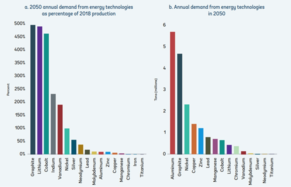 A 2020 World Bank report entitled ‘The Mineral Intensity of the Clean Energy Transition’, estimated that production of minerals underpinning the clean energy shift would have to increase by nearly 500% by 2050 to meet global demand for renewable energy.