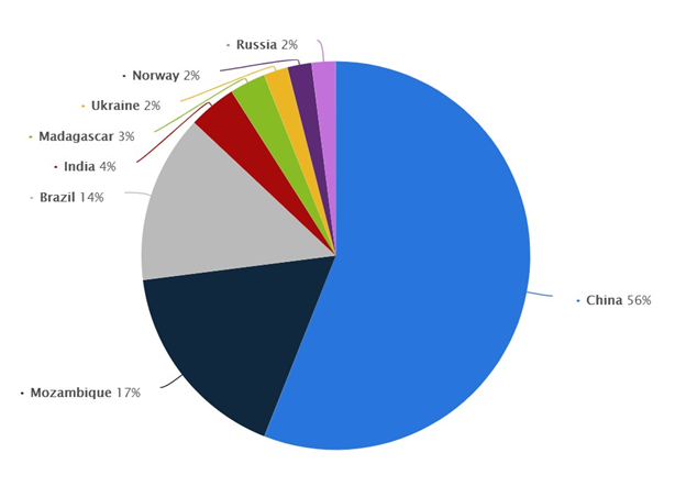 Meanwhile, its biggest rival China is by far the world’s biggest producer, with 700,000 tonnes of mined graphite recorded in 2019, representing more than 60% of the world’s total that year. After China, the next leading graphite producers are Mozambique, Brazil, Madagascar, Canada and India.