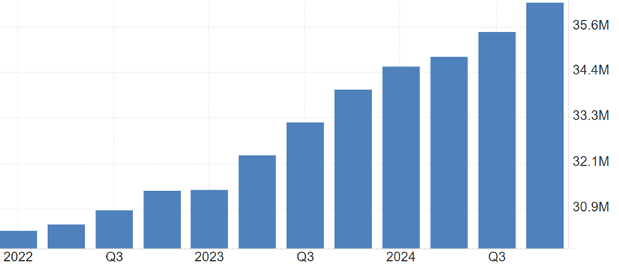 RM: Well the federal government in the US brings in a little over $5 trillion a year, the spending this year is well over $7 trillion, which means there’s $2 trillion worth of deficit debt that has to be financed. And paying interest on that unfunded debt is already the biggest expenditure the US gov’t has. That spending hampers a lot of good policy ideas.