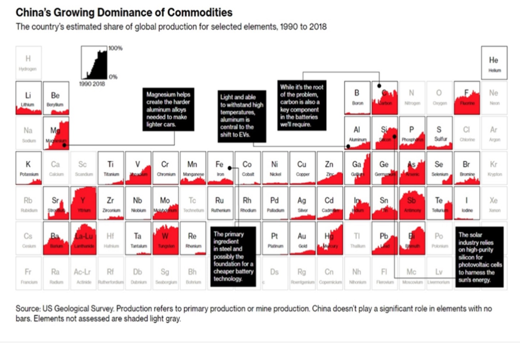 China mines about 80% of the 17 elements that appear on the Periodic Table and has a lock on ~90% of rare earth processing.