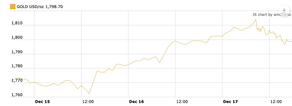 Is it any wonder that spot gold shot up immediately following the Fed announcement and continued to climb to an intra-day high of $1,812 on Friday? Silver gained more than a dollar on the news, hitting a three-day high of $22.62 Friday as well.