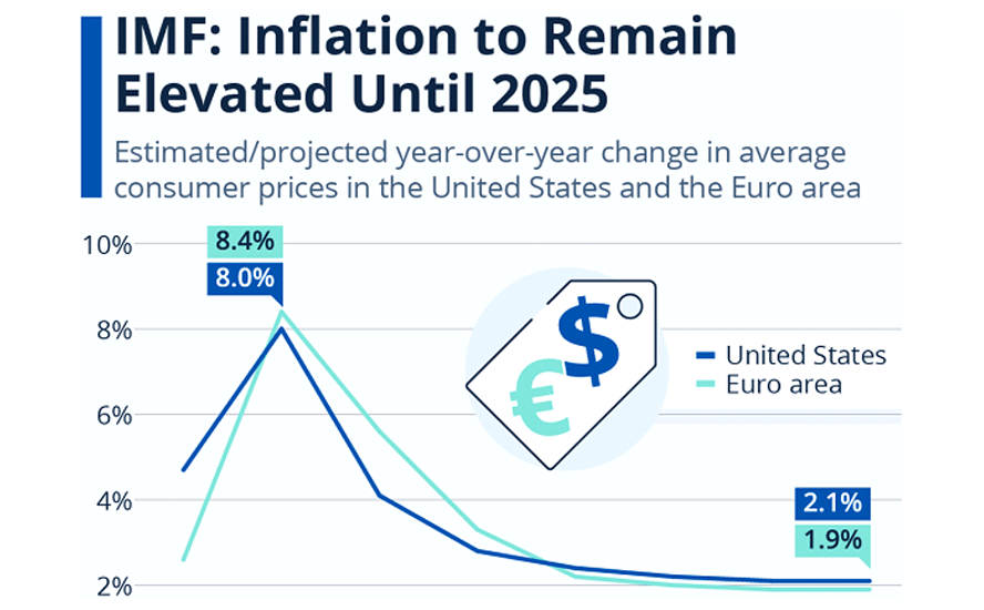 Despite inflation coming down notably from its 2022 highs in recent months thanks to gradual easing of supply chain disruptions and declining commodity prices, the International Monetary Fund doesn’t expect consumer price increases to return to the desired levels of around 2 percent before 2025 in most advanced economies.