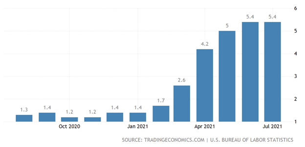 Zeroing in on the United States, data next week is forecast to show consumer prices rising by more than 5% for a third straight month in August (July CPI was 5.4%).