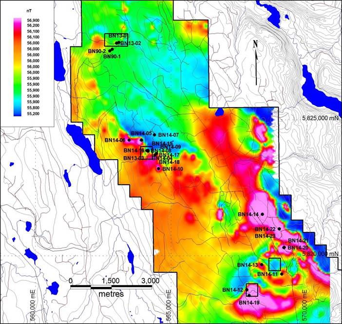 Drill assays, magnetic surveys (airborne and ground), as well as rock and soil sampling, demonstrates the promise of widespread mineralization at the Beaver target.