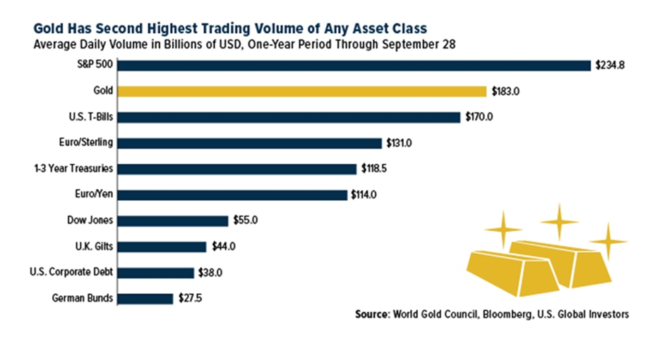 In fact, data from the World Gold Council shows that the precious metal is actually the second most liquid asset after S&P 500 stocks.