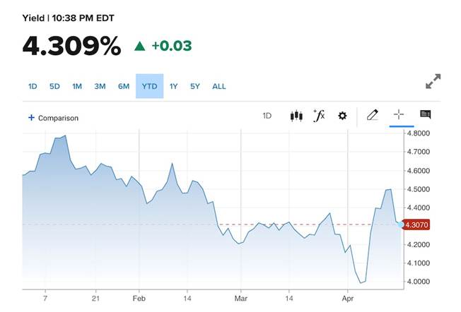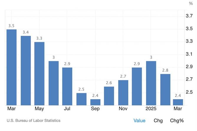 US inflation is down from 3% in January to 2.4% in March, but that could be because the tariffs haven’t yet taken effect. We are currently still in a 90-day pause.