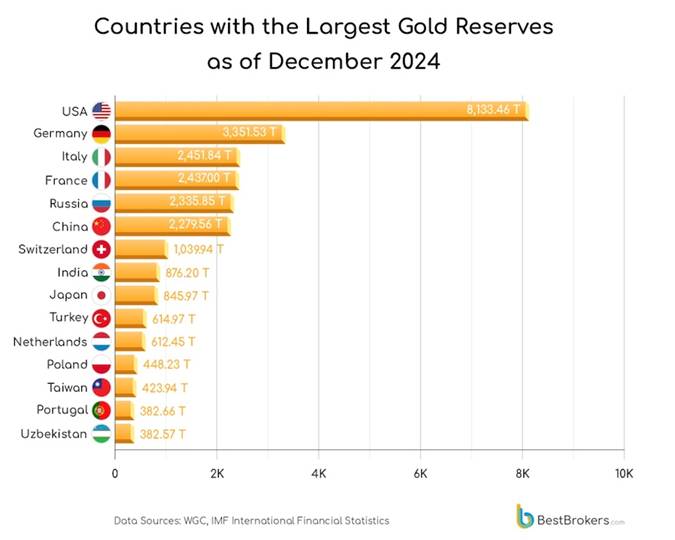 According to the latest numbers from the World Gold Council, central banks added 1,045 tonnes to global gold reserves in 2024 — extending their buying streak to 15 consecutive years.