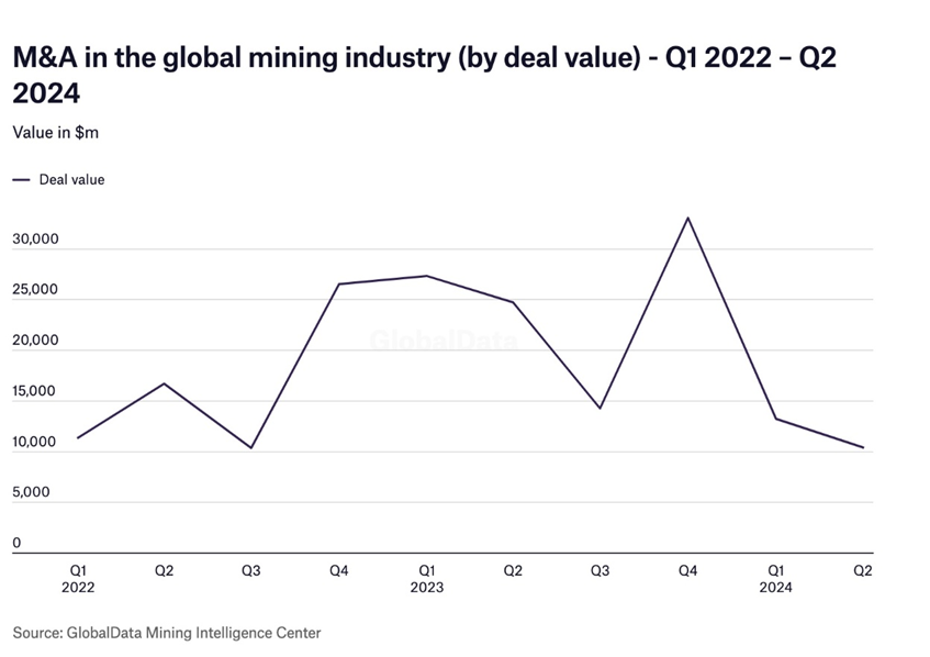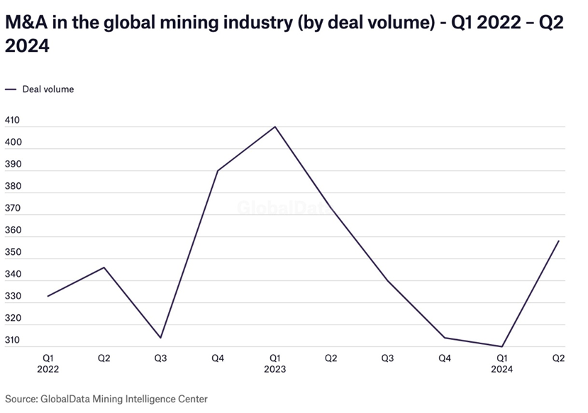 According to Mining Technology, there were 358 M&A deals announced in Q2 2024, worth a total value of $10.4 billion, according to GlobalData’s Deals Database.