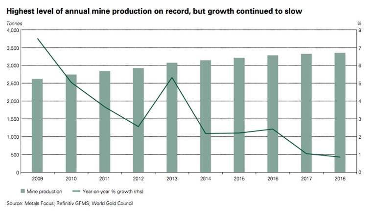 WGC reports that 2018 was a record year for mined gold production – 3,347t.