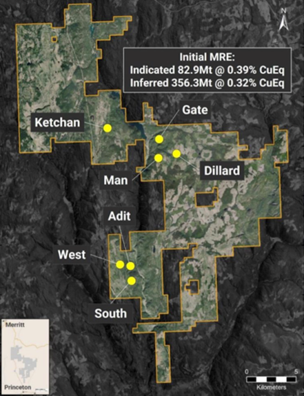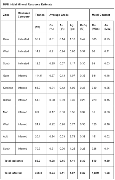 The Vancouver-based junior reported on Jan. 23 that the large, open-pit copper-gold resource estimate (MRE) for MPD includes seven deposits in total — West, Adit, South, Gate, Ketchan, Man and Dillard — shows the scale and potential of MPD and lays the foundation for future resource growth and development.