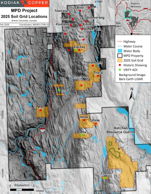 On Feb. 24 Kodiak reported soil geochemical and prospecting results from its 2025 exploration program at MPD.