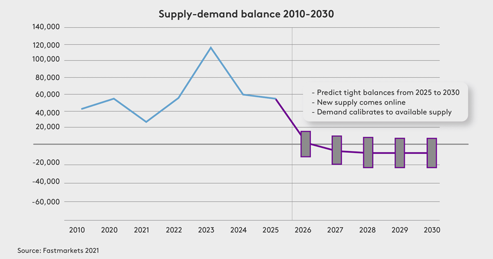 From 2025 to 2030, Fastmarkets is predicting tight balances in the lithium market on the back of healthy demand for the battery metal.