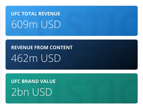 Statista notes the organization’s brand value soared by 335% in a single year, 2015-16, owing to a massive gain in popularity caused by interest in star fighters such as Conor McGregor and Ronda Rousey.