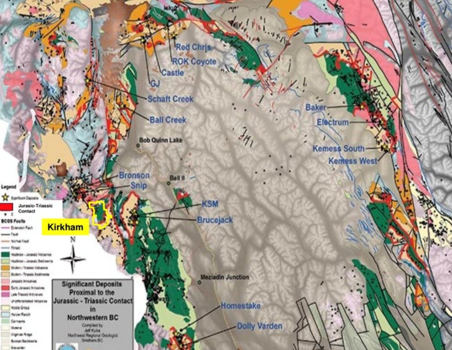 Between 220 and 175 million years ago, subduction and volcanism along the above-mentioned Stikine Terrane, an ancient volcanic arc, promoted the emplacement of world-class deposits such as KSM, Brucejack, Eskay Creek, Schaft Creek and Red Chris.