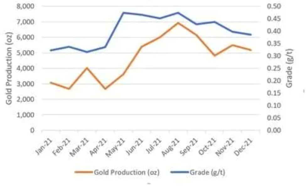 Production guidance for 2022 has been increased to 65,000-75,000 ounces, at cash costs of $1,250-$1,350 per ounce.