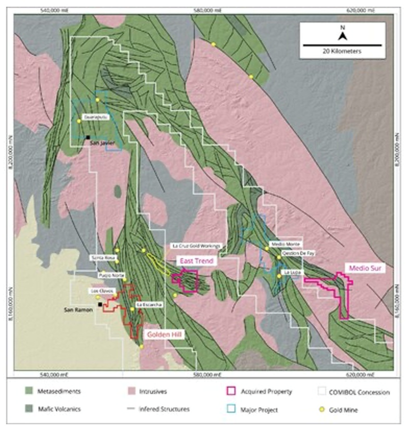 “Although our focus continues to be the exploration and development of the Golden Hill property, we will continue to target accretive acquisitions in the underexplored Bolivian Shield,” CEO Darren Hazelwood stated in the May 2 news release, adding: “Our team has reviewed a number of projects in the region. Given the relative close proximity of these properties to Golden Hill, we can optimize exploration work across our portfolio of gold-focused Bolivia properties. We believe these are low-cost, high-upside assets for future exploration work.”