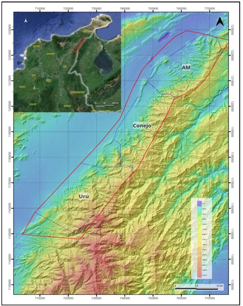 The Sierra Azul project sits along the Colombian portion of the Andean Belt — the world’s largest producing copper belt. It includes the copper-silver-rich Cesar Basin. This region provides access to major infrastructure resulting from oil & gas and mining operations, including Cerrejon, the largest coal mine in South America held by Glencore.