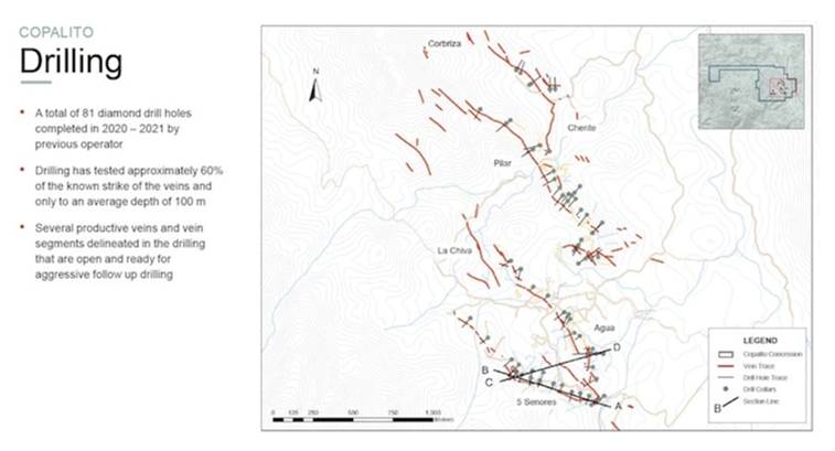 Investors are warned: the data for the Copalito property appears to be of a good standard. However, the Qualified Person (QP) has not conducted sufficient work to independently validate the assay drill core results. Therefore, the company is treating the Copalito results as historical in nature and are not to be relied on. The QP will independently verify results of the historical work during a site visit later this year.