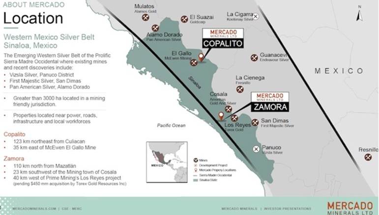“We received overwhelming support in this financing, and I am excited to start advancing Copalito and Zamora as we strive to become a premier explorer focused on the under explored western margin of the Sierra Madre. I would like to welcome Vizsla as a shareholder and I am looking forward to their support as we grow,” Mercado’s CEO Daniel Rodriguez stated in the news release.