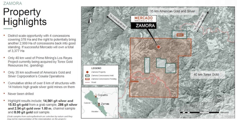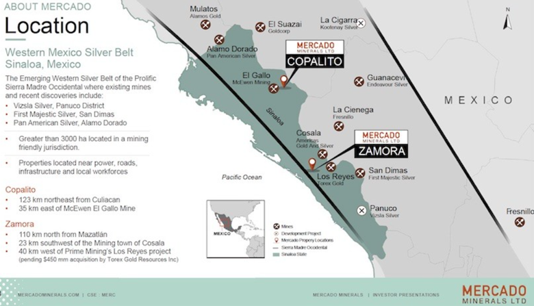 The Concordia acquisition completes a process that started in June with a Letter of Intent (LOI) between the two companies stating Mercado’s intention to obtain 100% of Concordia and its Mexican properties, named Copalito and Zamora. Both are located along the western side of the Sierra Madre Occidental, a world-class mining district hosting many silver and gold deposits.