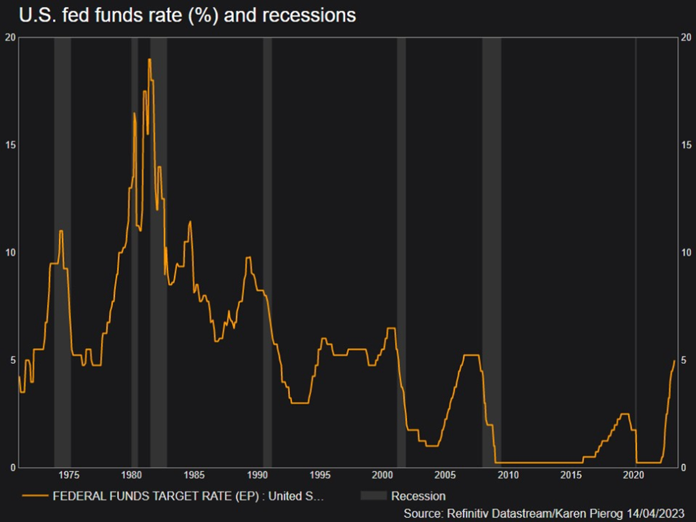 So, within a span of 15 months, the US interest rates essentially went up by 5%, which understandably had many concerned about a recession scenario as early as the end of this year. Those concerns are valid, that is, if they’re based solely on historical precedents (as illustrated below).