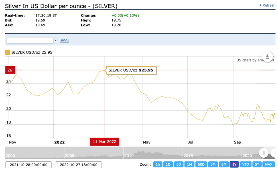 This silver rally proved to be a flash in the pan, however. An aggressive interest rate hike campaign by the US Federal Reserve, along with a record-high US dollar, has kept the safe-haven metal in check.