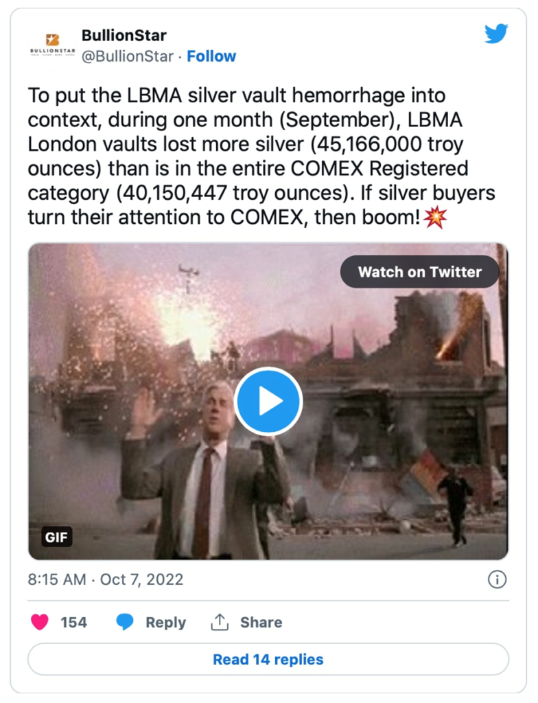This week a report from Ronan Manly of Bullion Star said more than 50% of deliverable silver on the Comex is suddenly “not available”.