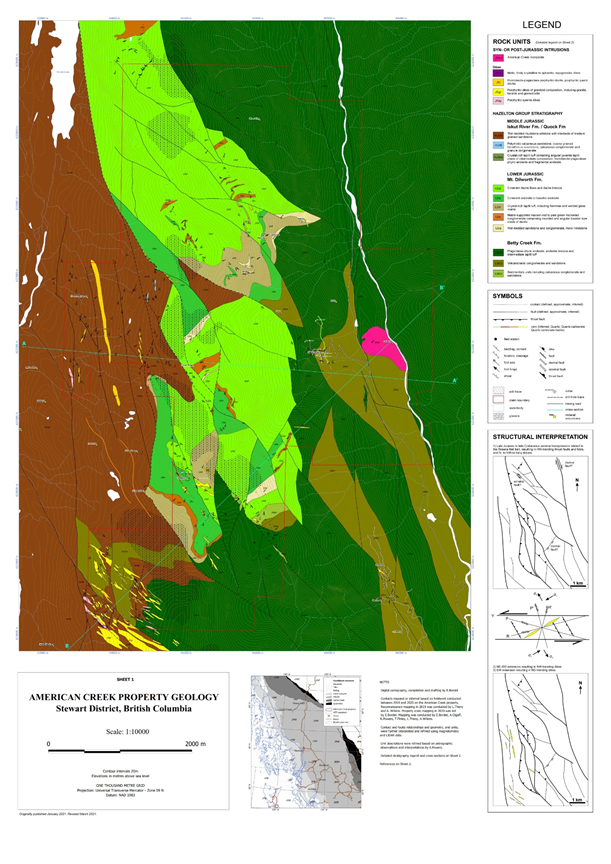 The Stewart mining camp, where the American Creek property is located, is part of the larger Stikinia Golden Triangle and contains well over 200 mineral occurrences.