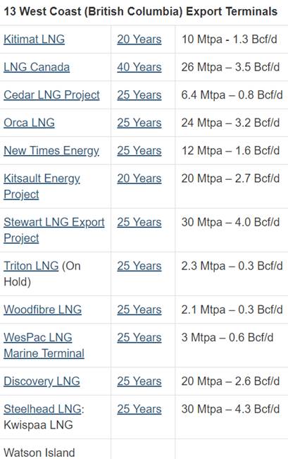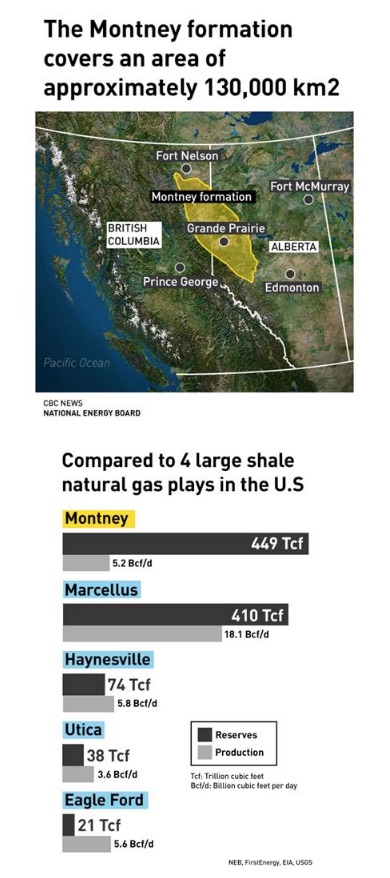 Where do you think all the natural gas to be compressed into liquid form for transport comes from? It comes from BC’s natural gas reserves, extracted from the northeast corner, mostly from the Montney tight gas play – which contains more gas than four of the largest fields in the US.