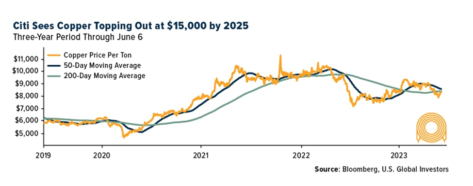 In fact the copper market could see an “unprecedented inflow” in coming years as investors seek to profit from the metal’s anticipated surge in value, driven by growing demand for electric vehicles (EVs) and renewable energy, according to Citigroup, via U.S. Global Investors.