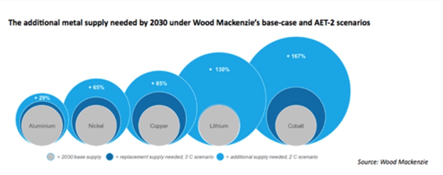 Under Wood Mackenzie’s Accelerated Energy Transition-2 (AET-2) scenario, which is consistent with limiting the rise in global temperatures since pre-industrial times to 2 °C, 360 million tonnes (Mt) of aluminium, 90 Mt of copper, and 30 Mt of nickel will feed the energy transition over the next 20 years. This level of additional metal presents obvious challenges for producers and consumers alike.
