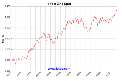 Ignored by investors for years as the herd chased marijuana stocks, bitcoin, tech, and in 2020, gold and silver, capital is returning to base metals thanks to prolonged runs on copper, iron ore, zinc and lead. The charts below say it all. These metals are booming due to a combination of red-hot demand from China, the world’s top commodities consumer, and supply constraints such as a number of zinc mines being closed in recent years; or in the case of copper, mines shuttered temporarily to prevent the spread of coronavirus in South America, where most of the red metal is mined.