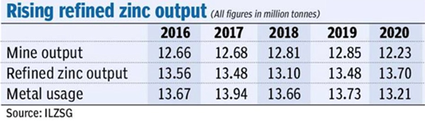 In 2020, refined zinc supply of 13.70 million tonnes exceeded metal usage of 13.21Mt, as the table below show.