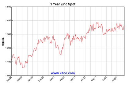 In sum, the group predicts global zinc prices will firmly remain over $2,750 per tonne ($1.24/pound) for the rest of the year, on the declining surplus, supply disruptions including smelting operations, and recovery in the world economy, particularly China, where the government is investing heavily in infrastructure programs requiring raw and finished metal products including galvanized steel containing zinc.