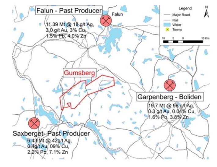 The project is in good company, located within the Bergslagen mining district between the past-producing Falun and Saxberget mines, and the active Garpenberg (Boliden) and Zinkgruvan (Lundin) mines.