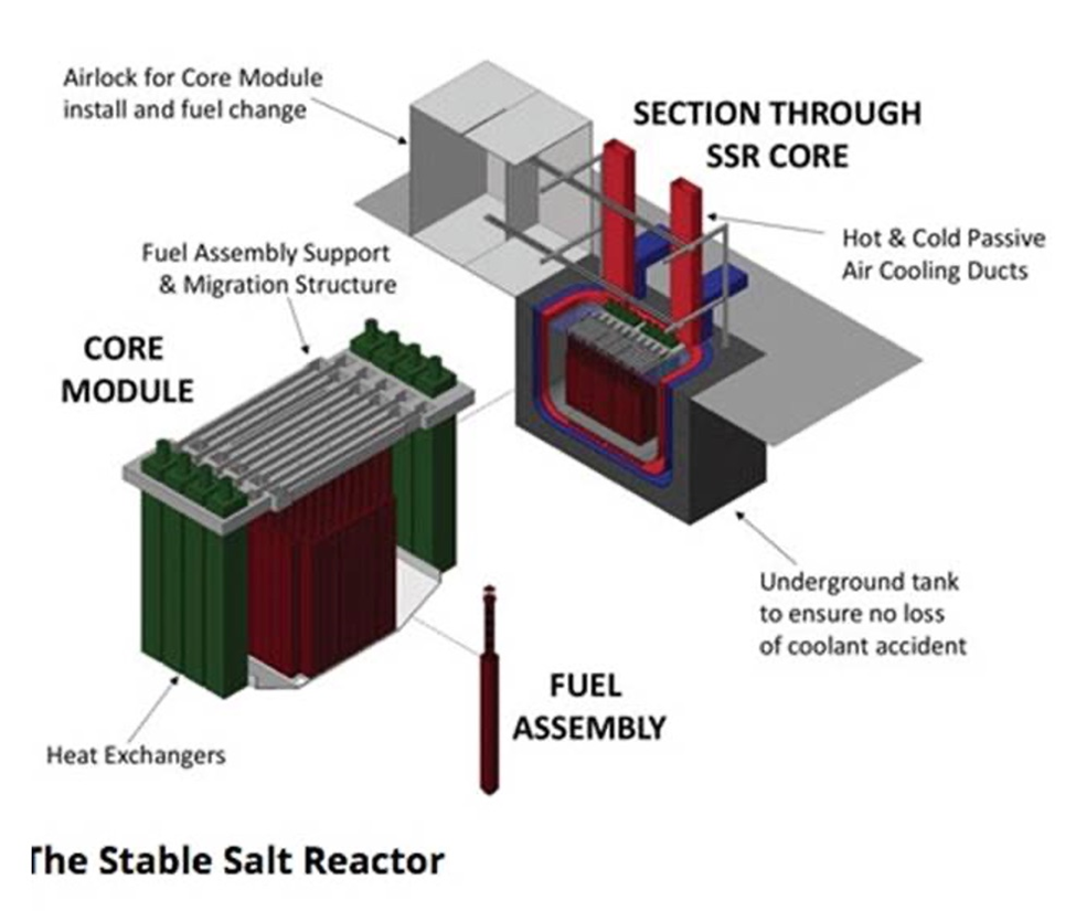 Meanwhile in New Brunswick, the provincial government has committed $10 million towards building a “nuclear research cluster” that includes a demonstration Stable Salt Reactor – Wasteburner (an SSR-W is suitable for grid-scale power, between 300 megawatts and 3GW) to be powered by spent uranium. A full-sized SSR-W is planned for 2030.