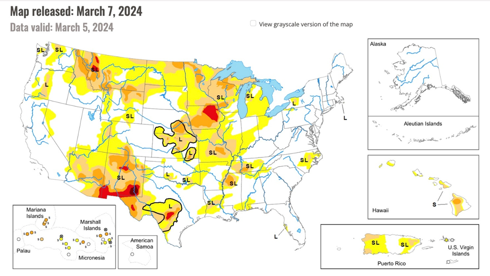 Extreme to exceptional drought persists in southern New Mexico, with extreme drought also in portions of eastern Iowa and northwest Montana. Drought developed in portions of the Upper Midwest and northern Rockies.