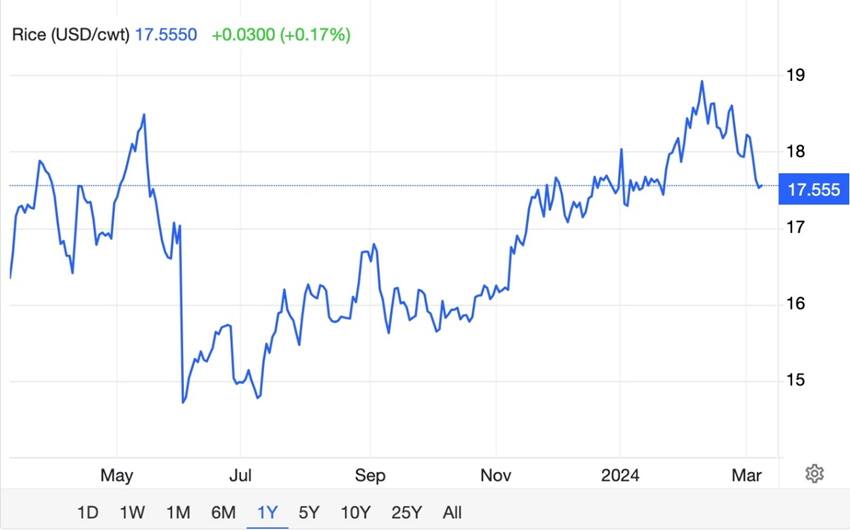In December the World Bank predicted, “Rice prices will remain high into 2024, assuming India maintains its export restrictions. The outlook assumes a moderate-to-strong El Niño.”