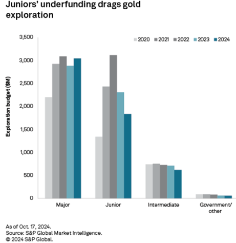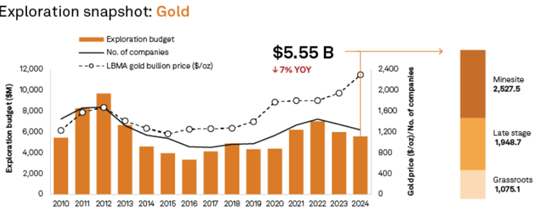 Exploration budgets fell by 22% over 2023 and 2024. Just 19% of the existing budget for exploration in 2024 went to greenfield exploration.