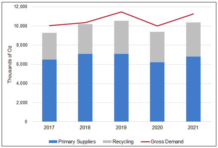 Johnson Matthey’s May 2021 PGM market report confirmed that global palladium supply continues to lag behind demand.