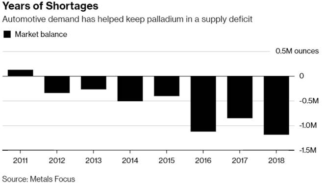 Moreover, currently and for the foreseeable future, palladium is facing constricted supply. The palladium market has been in deficit for years.