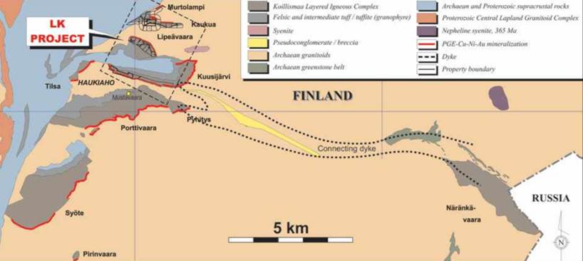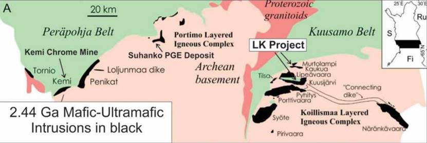The Fennoscandia shield includes a number of large Cu-Ni-PGE deposits including Pechanga on Russia’s Kola peninsula, Kevitsa, Sakatti, and the Portimo Complex located 90 km to the northwest of LK.