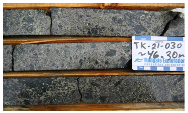 Tyko’s ore contains twice as much nickel as copper, and equal amounts of platinum and palladium. On Jan. 5 PDM announced assay results from the first two holes of a maiden drill program at the Smoke Lake target, completed last year.