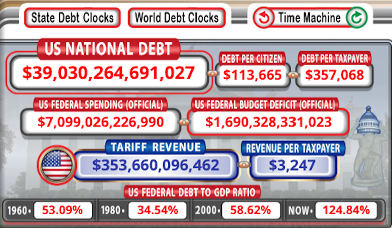 The $39 trillion national debt now exceeds Gross Domestic Product of $31 trillion.